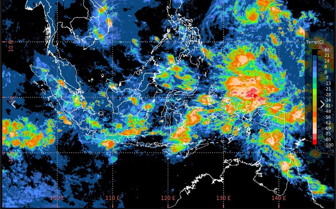 Hujan sedang hingga lebat di Maluku Utara, termasuk Halmahera Selatan.