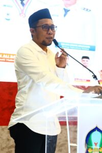 Bupati Basam Kasuba saat menyampaikan sambutan dalam rangka Pelantikan pengurus PWI kabupaten Halmahera Selatan